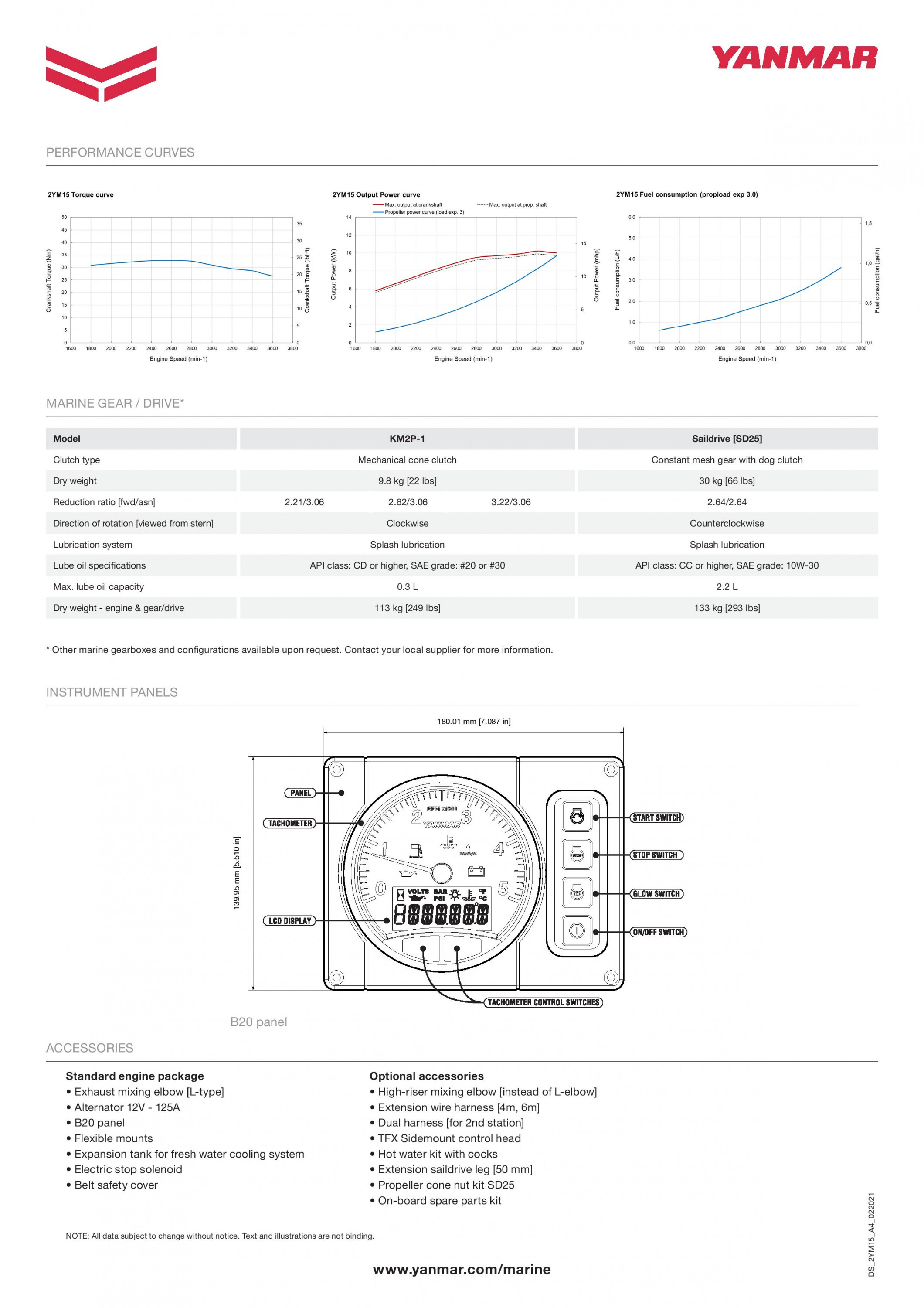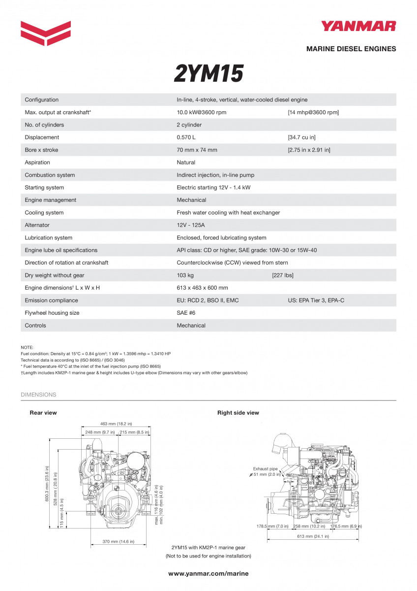 Moteur Yanmar 2YM15 14cv avec sail drive SD25 + tableau de bord Type B20 + faisceau 4 mètres