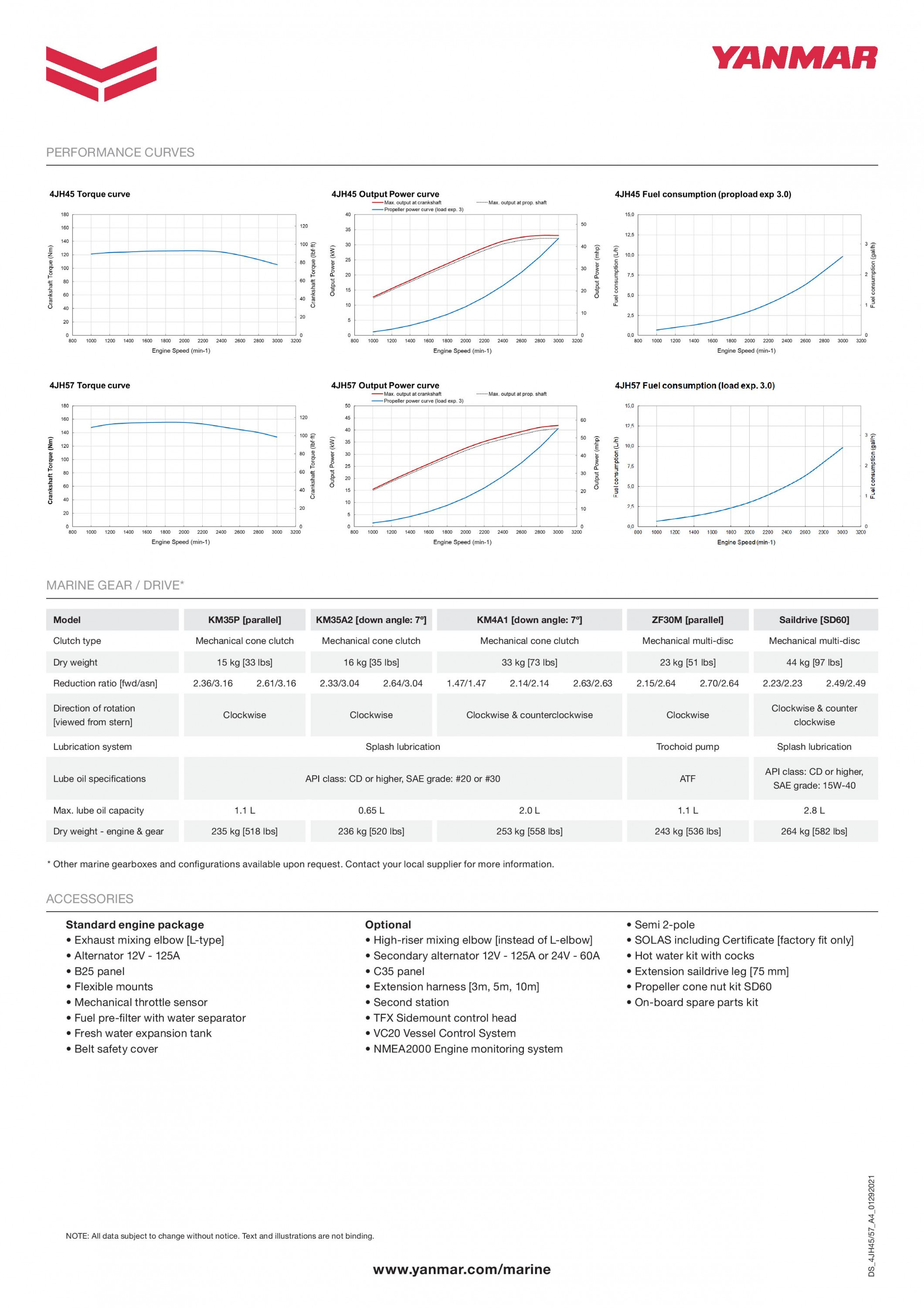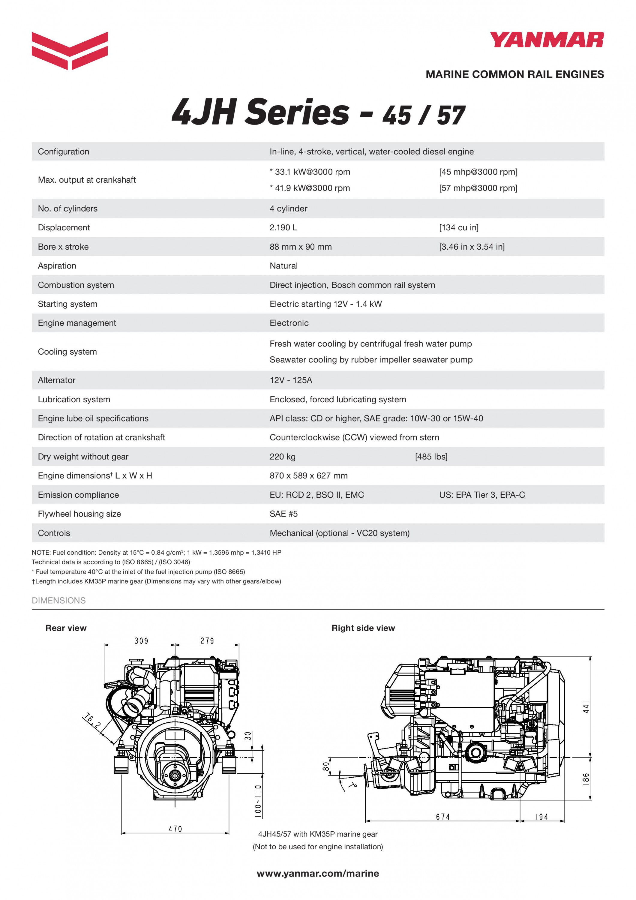 Moteur Yanmar 4JH45 45cv avec inverseur KM35 + tableau de bord Type B25 + faisceau 5 mètres