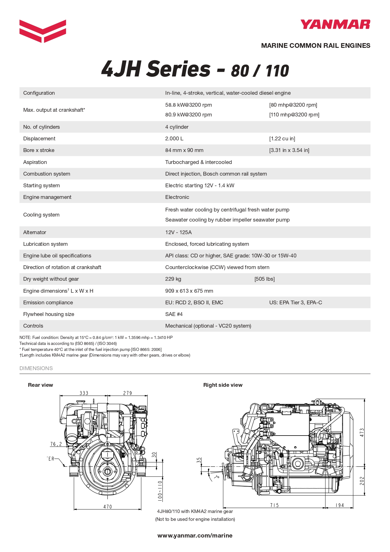 Nom : YANMAR 4JH80 (mécanique) + SD60